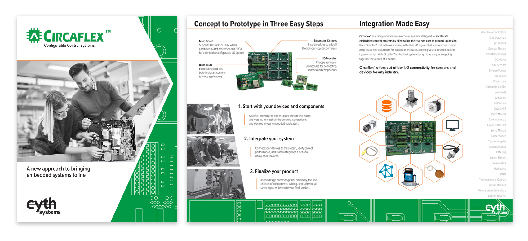 Brochure for cyth systems highlighting a product that provides configurable control systems
